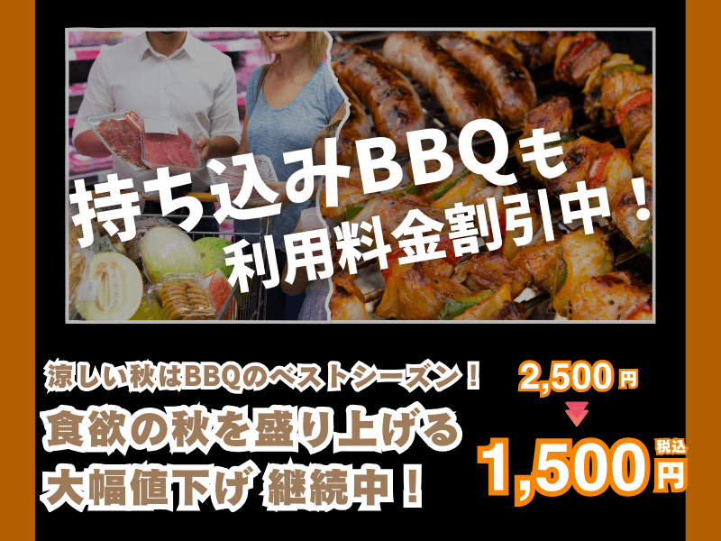 他の方の食材を取り分けで参加される場合でも、BBQ機材や備品等をご利用いただく料金として持ち込みプランの2,000円を頂戴しております。