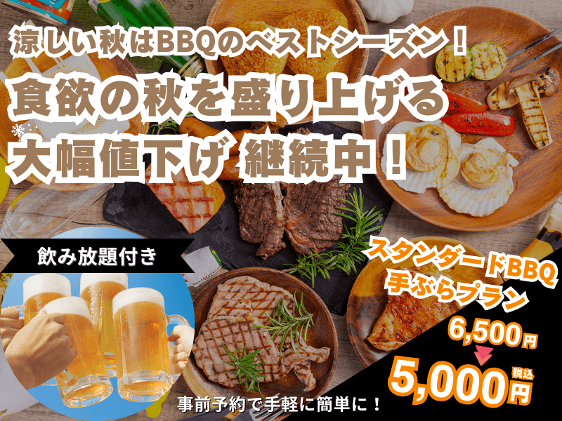 - 🍁秋トクキャンペーン開催!THE ROOF TOP BBQ SUNNY SQUARE OSAKA BAY