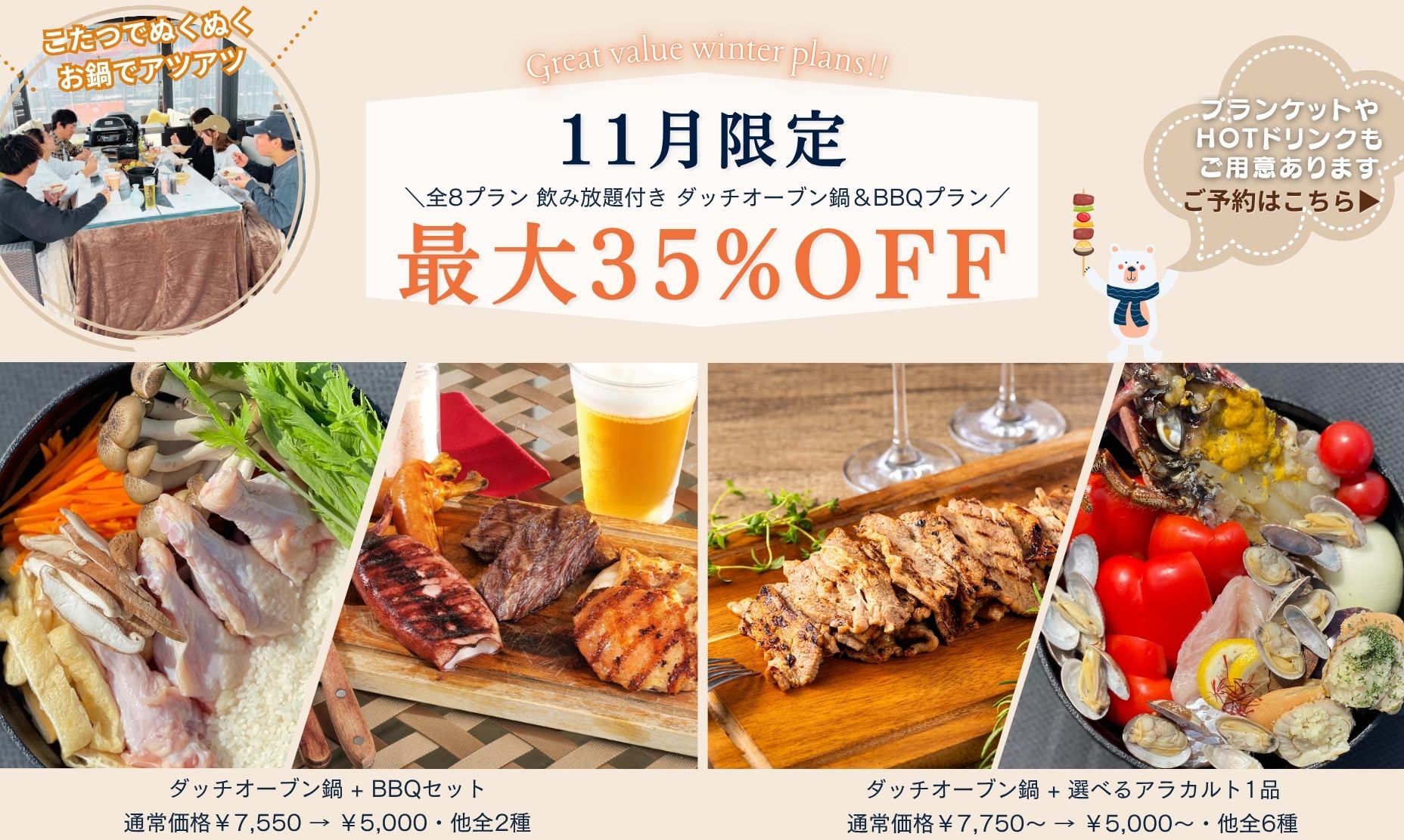- 【11月限定】最大35%OFF!ダッチオーブン鍋×手ぶらBBQプラン