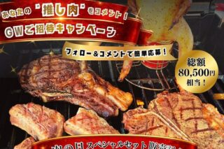 当施設では、毎月29日限定で、ビア缶チキンやトマホークステーキなどを楽しめる肉の日限定スペシャルセットを販売します。